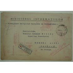 hlavičkový dopis rumunského ministerstva adresovaný na Zemskou banku v Praze, 4x otisk frankotypu; zajímavé