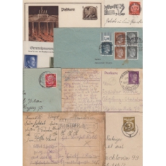 čtyřbloky s okraji a počitadly, mj. MICHEL 831-842, dále Služební s okraji a počitadly, obsazené území - přetisk OSTLAND (čtyřbloky), přetisk SERBIEN, Generální gouvernement - 5pásy 117-119, k tomu část razítkovaných známek; vše v 8listovém zásobníku, katalog 570€