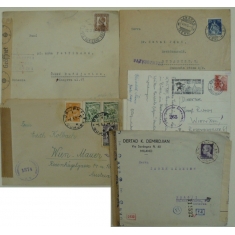maďarská cenzura (na dopise ze Švýcarska 1915), rakouská cenzura (Jugoslávie 1952, Švýcarsko 1949), německá cenzura (Itálie 1943, Bulharsko 1942)