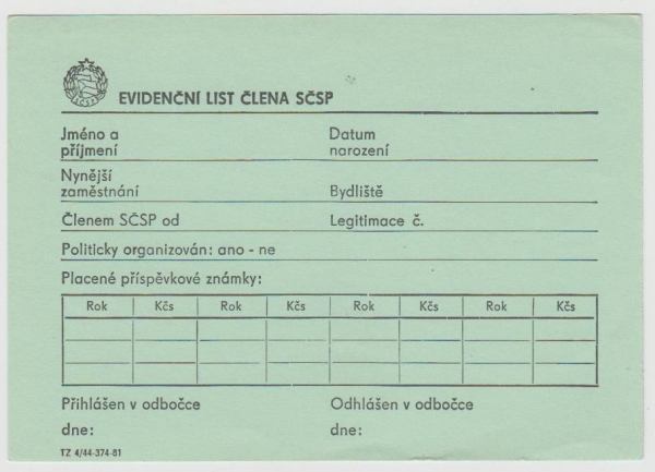 evidenční list