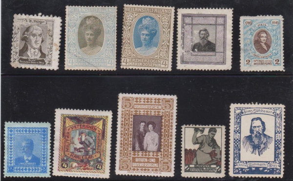 1920 Sestava 10 propagačních nálepek, osobnosti