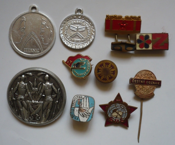 Sestava 11 odznaků a pamětních suvenýrů