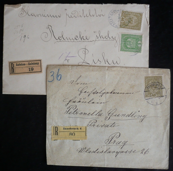 razítka ZALUŽANY a INNSBRUCK