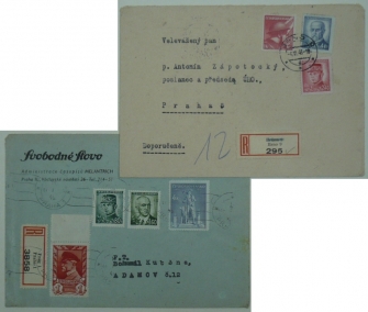 dvojjazyčné R nálepky BRNO a PRAHA, adresát Zápotocký - budoucí prezident