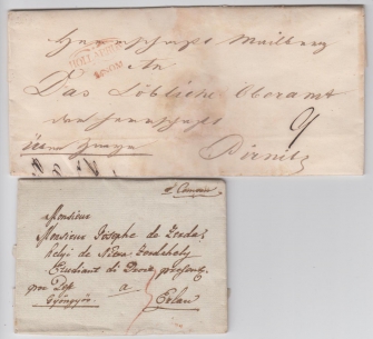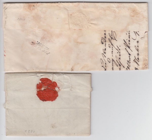 1827 Sestava 2 skládaných dopisů, mj. Brtnice