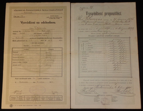 1891 Sestava 2 vysvědčení