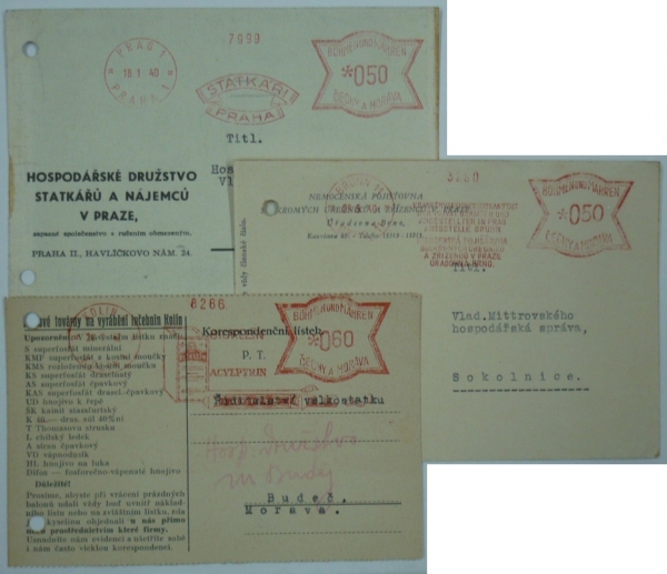 Statkáři Praha, Nemocenská pojišťovna Brno, ACYLPYRIN Kolín; vše s registračními otvory