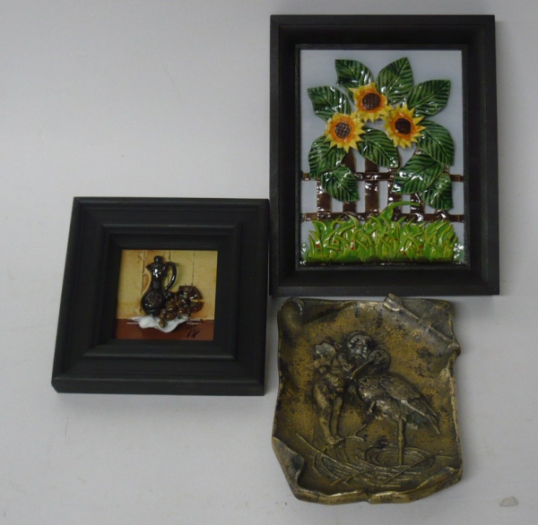 Sestava 3 miniaturních obrázků (1x reliéfní kovová plastika)