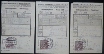 2x Hitler 1K, 1x Lipové listy 1K; razítko PŘEROV, katalog 150Kč; hezké
