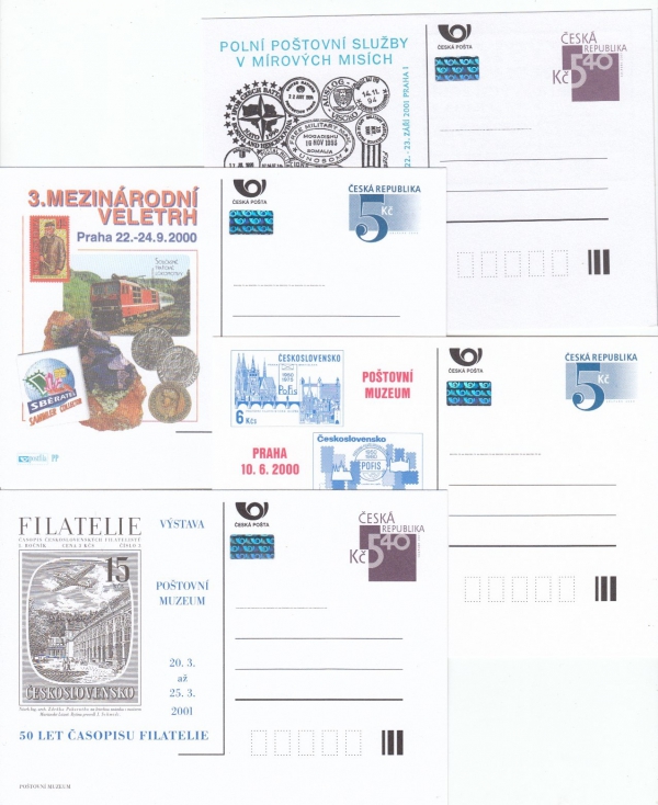 CDV52, přítisk Postfila "3. veletrh Sběratel", CDV63, přítisk PM21 "50 let časopisu Filatelie", CDV63A, přítisk "Polní poštovní služby v mírových misích"; bezvadné, katalog přes 500Kč