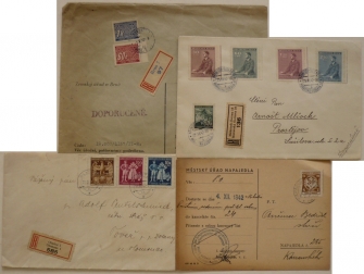 3x R dopisy, Doplatní, Služební, kompletní série 53. narozeniny, kompletní série 5. výročí Protektorátu ČaM; 1x výrazný sklad, 1x bez klopy