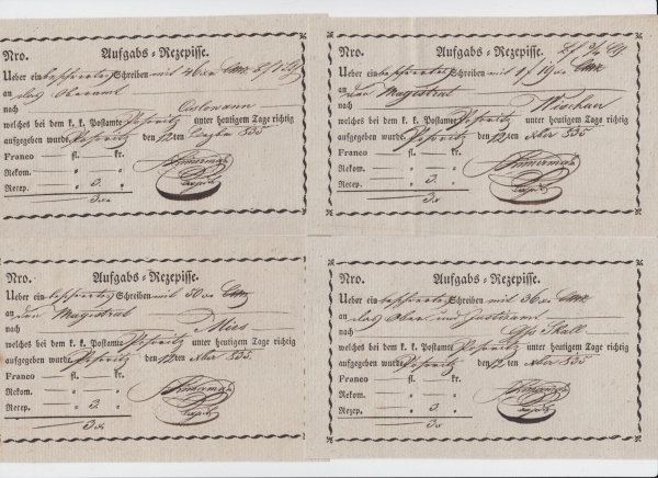 1835 Sestava 4 podacích lístků se stejným datem