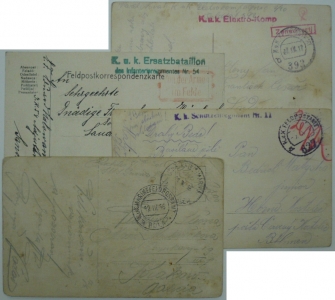 K.u.K. MFPA POLA, K.u.K. ELEKTRO-KOMP. aj., cenzura, razítko "VON DER ARMEE IM FELDE"; zachovalé