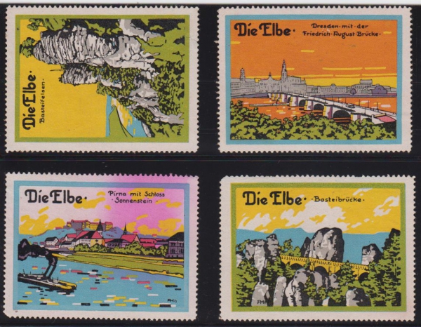 1910 Sestava 4 propagačních nálepek - Die Elbe (Německo)