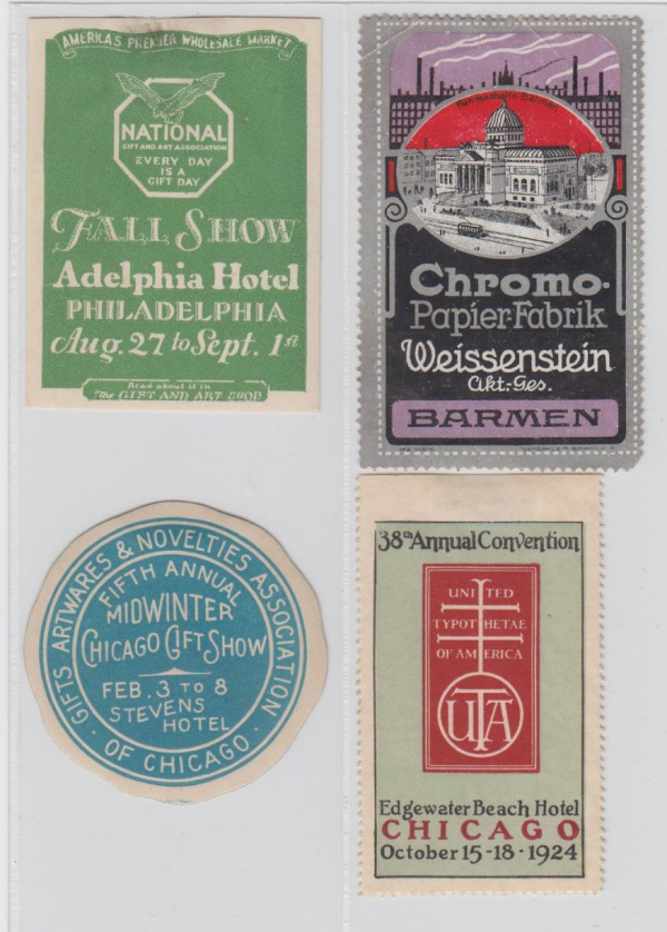 1920 Sestava 4 propagačních nálepek, USA