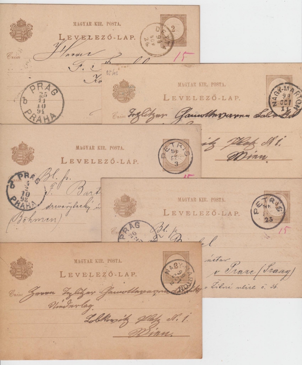 razítka: 2x Nagymarton (Rakousko), Detta, 2x Petris (Rumunsko)