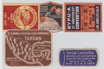 1910 Sestava 5 propagačních nálepek, USA, Mexiko