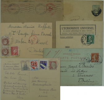 2x dopisnice, celinová obálka, novinová páska, cenzura a zajatecká pošta