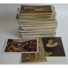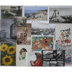 sbírka 100 kusů pohlednic s námětem zamilovaných dvojic, odloučených vojáků a podobně; uloženo v lesklém zásobníku; standardní kvalita