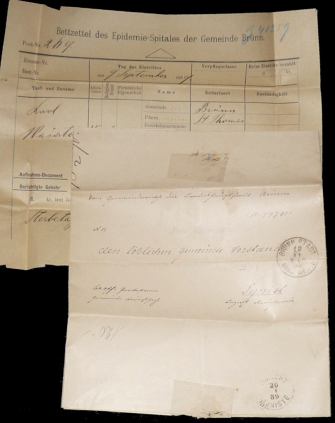 evidenční list z brněnské nemocnice na jméno Karl Wašata, Týniště, včetně obsahu, bezvadné