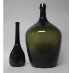 Demižón z tmavého skla, 10 litrů; k tomu láhev