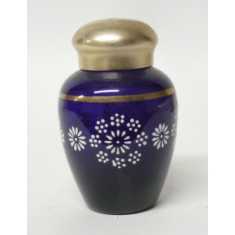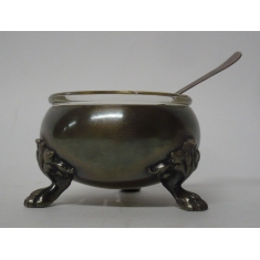 Slánka s malou lžičkou, sklo + alpaka; bezvadná