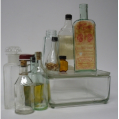 Lékárenské sklo, sestava skleniček a dózy