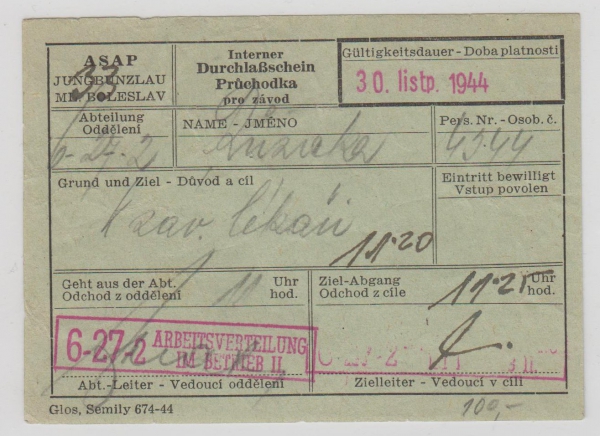 1944 ŠKODA Mladá Boleslav (ASAP), průkazka