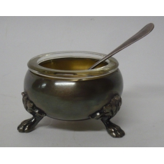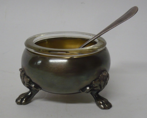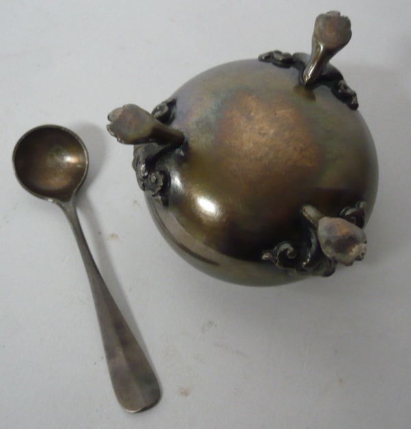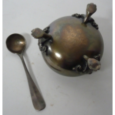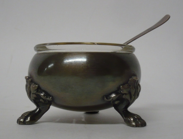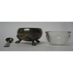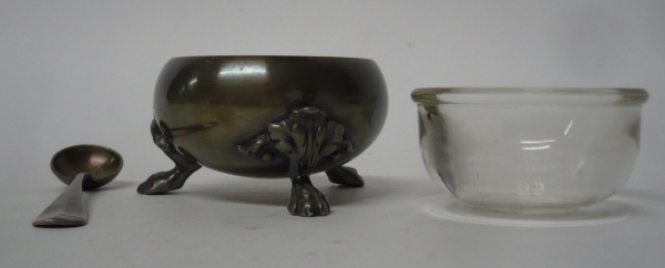 Slánka s malou lžičkou, sklo + alpaka; bezvadná