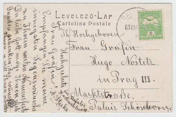 Šlechtická korespondence, hraběnka Hugo Nostitz-Rhieneck, Praha