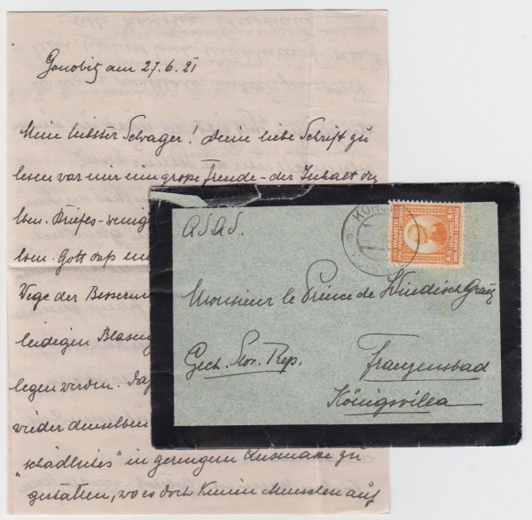 1921 Šlechtická korespondence, Windisch-Graetz Alfred, toho času Františkovy Lázně