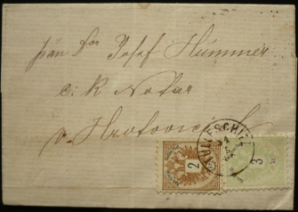 emise 1883, 2Kr + 3Kr, razítko TULLESCHITZ; hezké