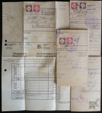 sestava 4 úředních dokumentů se služebními známkami, razítko KUTNÁ HORA, katalog přes 400Kč