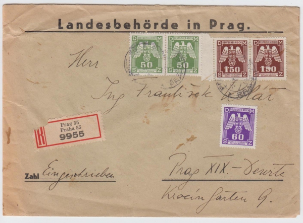 služební R dopis, tříbarevná frankatura; lehké skvrny
