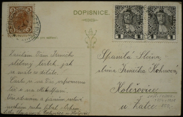 emise 1904 + 1908, razítko CERHOVICE; hezké