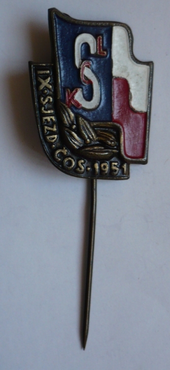 Sokol - odznak IX. sjezd ČOS Praha 1951 / Fe barvené 19x25mm