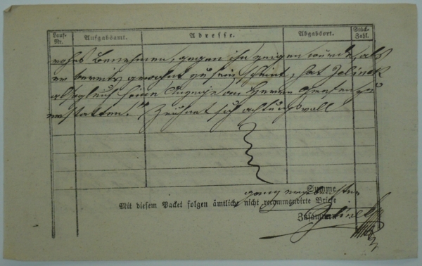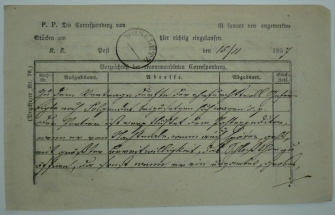 1857 Soupis zapsaných zásilek