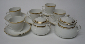 kompletní pro 6 osob, 1 šálek s malým oťukem, jinak bezvadné; osobní odběr v Modřicích u Brna nebo smluvní doprava