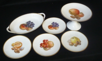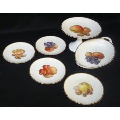 obsahuje 4 dezertní talířky, podnos na noze a oválný podnos; keramička Bavaria