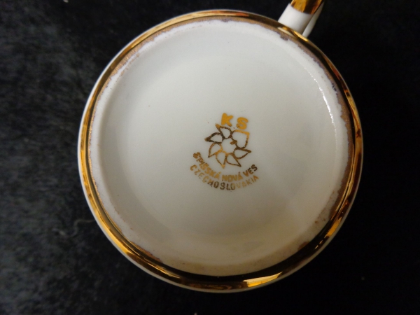 výrobce KS, Spišská Nová Ves; silně zlaceno, výška šálku 5,5cm, průměr 9cm