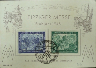 nálepní list se známkami, příležitostné razítko LEIPZIG 2.3.48