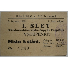 I. orelský slet Středočeské župy B. Pospíšila / vstupenka k stání, Příbram 5.6.1922