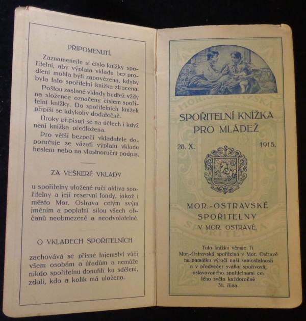 vkladní knížka, Moravsko-ostravská spořitelna, spořitelní knížka, dobrý stav