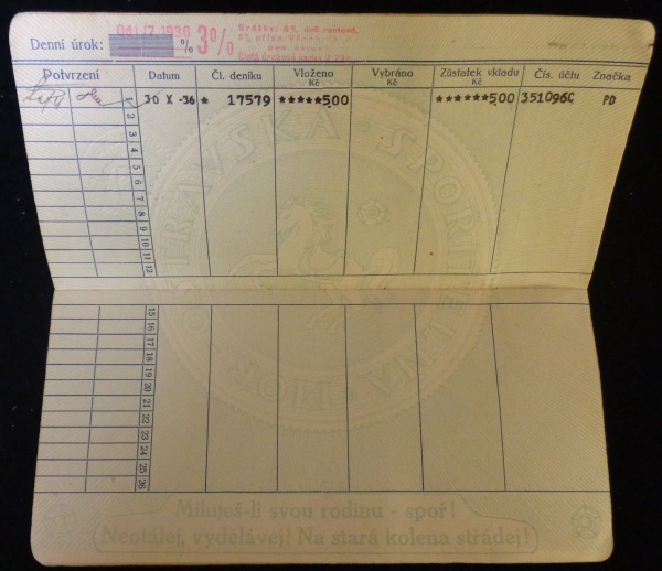 1936 Spořitelní knížka