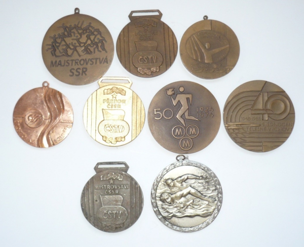 sestava 9 plaket a medailí, mj. "TOURNOI N. AMERICAN TOURNEY 1965"