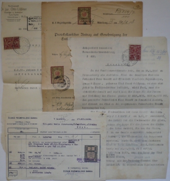 mj. předběžný rakouský kolek 5K a kolek 2h použitý s Sudetech (Louny); otřepy