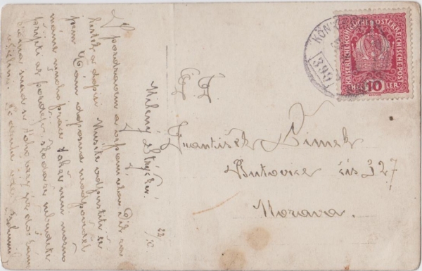 podací razítko vlakové pošty č.399 WOSTROMĚŘ - KÖNIGGRÄTZ; Q2 - růžky