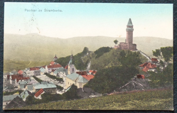 koláž "čtyřlístek", litografie, prošlá, dlouhá adresa, Q2