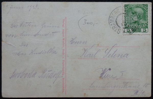 koláž "čtyřlístek", litografie, prošlá, dlouhá adresa, Q2