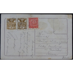 koláž "čtyřlístek", litografie, prošlá, dlouhá adresa, Q2
